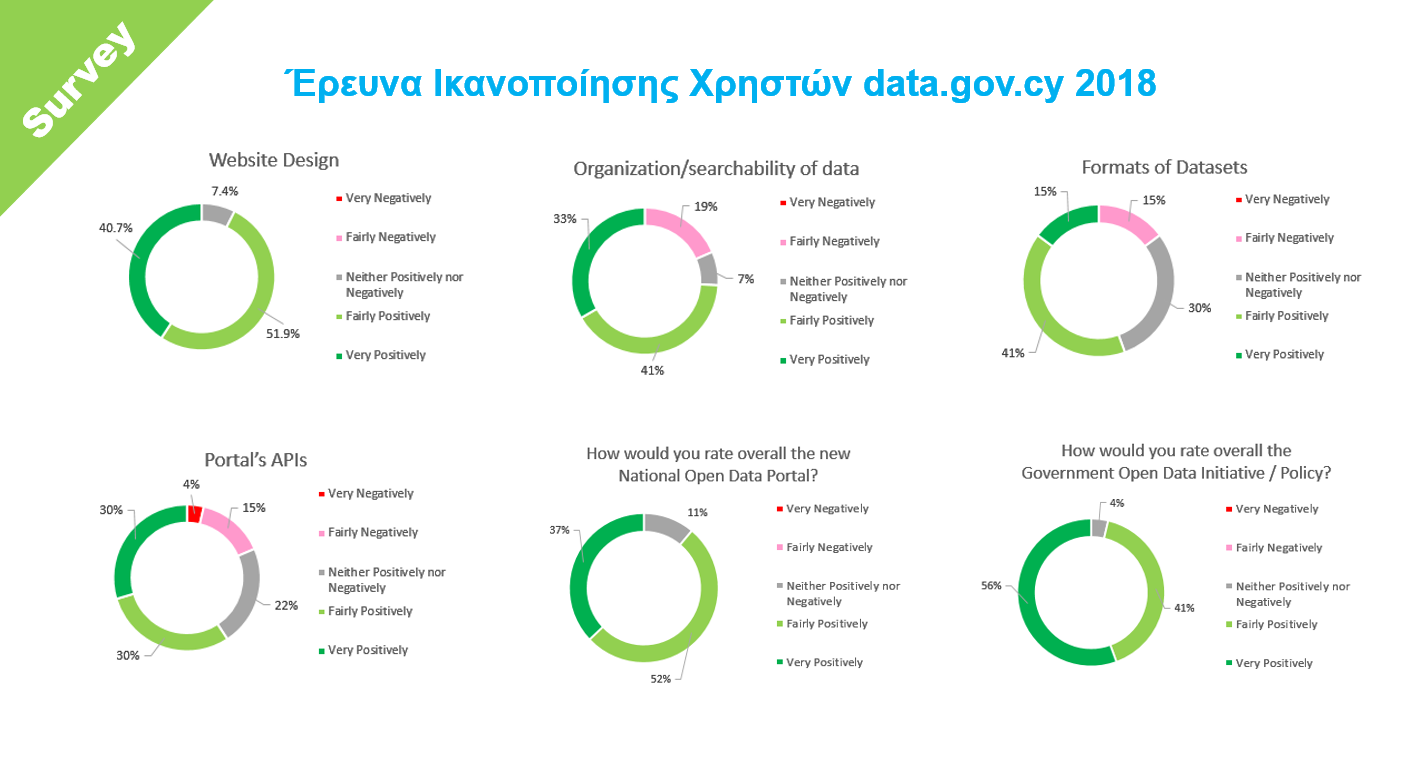 Η ανάπτυξη της νέας έκδοσης της Εθνικής Διαδικτυακής Πύλης Ανοικτών Δεδομένων data.gov.cy, επέφερε θεαματική βελτίωση του βαθμού ικανοποίησης των χρηστών σε όλα τα επίπεδα. Αυτό είναι ιδιαίτερα εμφανές εκεί και όπου υπάρχουν συγκριτικά στοιχεία από την Έρευνα Ικανοποίησης που διενεργήθηκε το 2016.