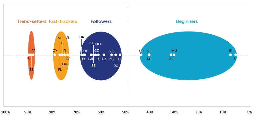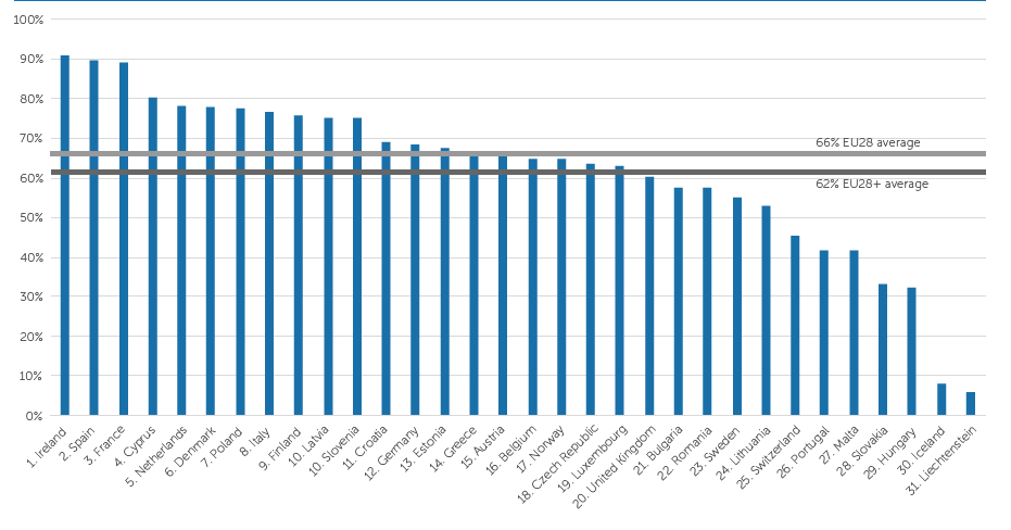 Τα συνολικά αποτελέσματα ανά χώρα για το έτος 2019 παρουσιάζονται στους πιο κάτω δύο Πίνακες, με την Κύπρο να βρίσκεται, όπως προαναφέρθηκε στην 4η θέση στην κατηγορία “Fast Trackers”, μετά τις Ιρλανδία (91%), Ισπανία (90%) και Γαλλία (89%). Στους επιμέρους τέσσερις δείκτες αξιολόγησης η Κύπρος συγκέντρωσε τις πιο κάτω βαθμολογίες: