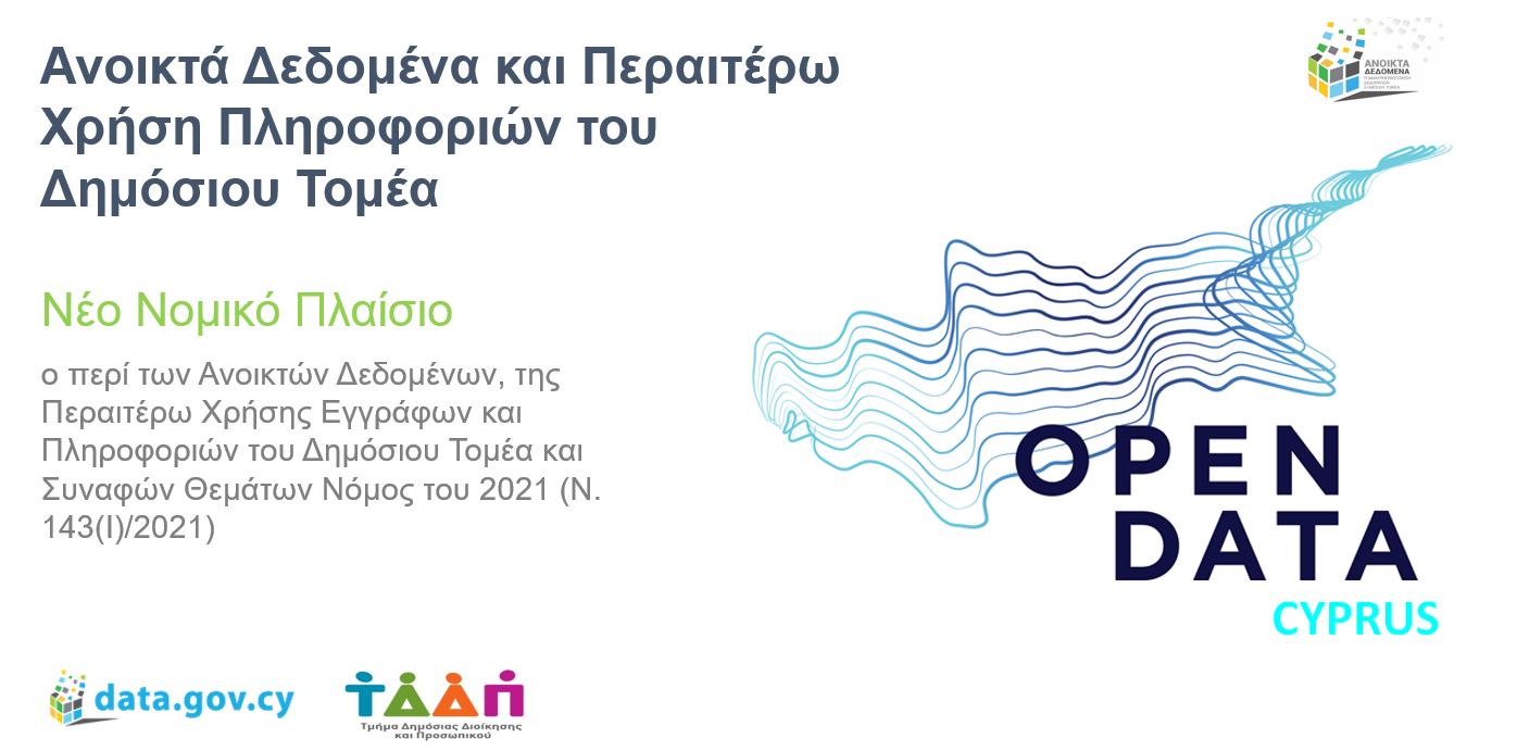 Με τον Νόμο Ν.143(Ι)/2021 εναρμονίζεται η κυπριακή νομοθεσία με την Ευρωπαϊκή Οδηγία 2019/1024/ΕΕ του Ευρωπαϊκού Κοινοβουλίου και του Συμβουλίου της 20ης Ιουλίου 2019, σχετικά με τα ανοικτά δεδομένα και την περαιτέρω χρήση πληροφοριών του δημόσιου τομέα. Ο εν λόγω Νόμος αντικαθιστά τον περί της Περαιτέρω Χρήσης Πληροφοριών του Δημόσιου Τομέα Νόμο του 2015 (Ν.205(Ι)/2015), ο οποίος καταργείται με τον Ν.142(Ι)/2021.