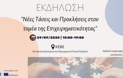 Αν είσαι νέα/νέος επιχειρηματίας, υφιστάμενη/υφιστάμενος επιχειρηματίας που τον ενδιαφέρουν οι νέες τάσεις στο χώρο της επιχειρηματικότητας ή επιθυμείς να μάθεις περισσότερα για την κοινωνική επιχειρηματικότητα, τα ανοικτά δεδομένα και την ψηφιακή επιχειρηματικότητα, τότε το παρακάτω συνέδριο… σε αφορά! Το συνέδριο με θέμα «Νέες Τάσεις και Προκλήσεις στον τομέα της Επιχειρηματικότητας» διοργανώνεται από τον συμβουλευτικό οργανισμό Eurosuccess Consulting σε συνεργασία με ΚΕΒΕ.